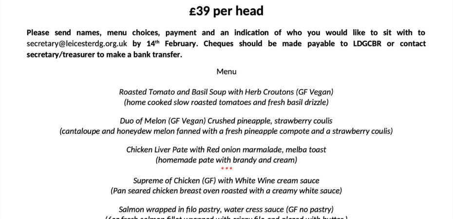 The Guild Annual Dinner will be held on Saturday 24th February at Leicester Cricket Club. Please see the poster for more details.